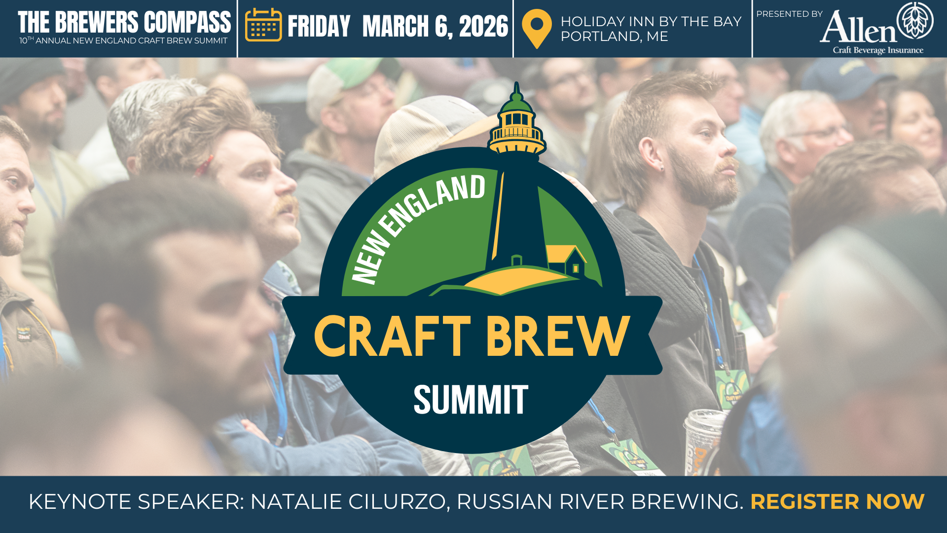 Join the region’s craft beer community on Friday, March 6, 2026, at the Holiday Inn by the Bay in Portland, Maine, for the East Coast’s largest business-to-business conference dedicated to the craft brewing industry. Now in its 10th year, the Summit brings together brewers, suppliers, and industry leaders for a full day of learning, connection, and collaboration. The 2026 Summit is proudly presented by Allen Insurance and Financial.